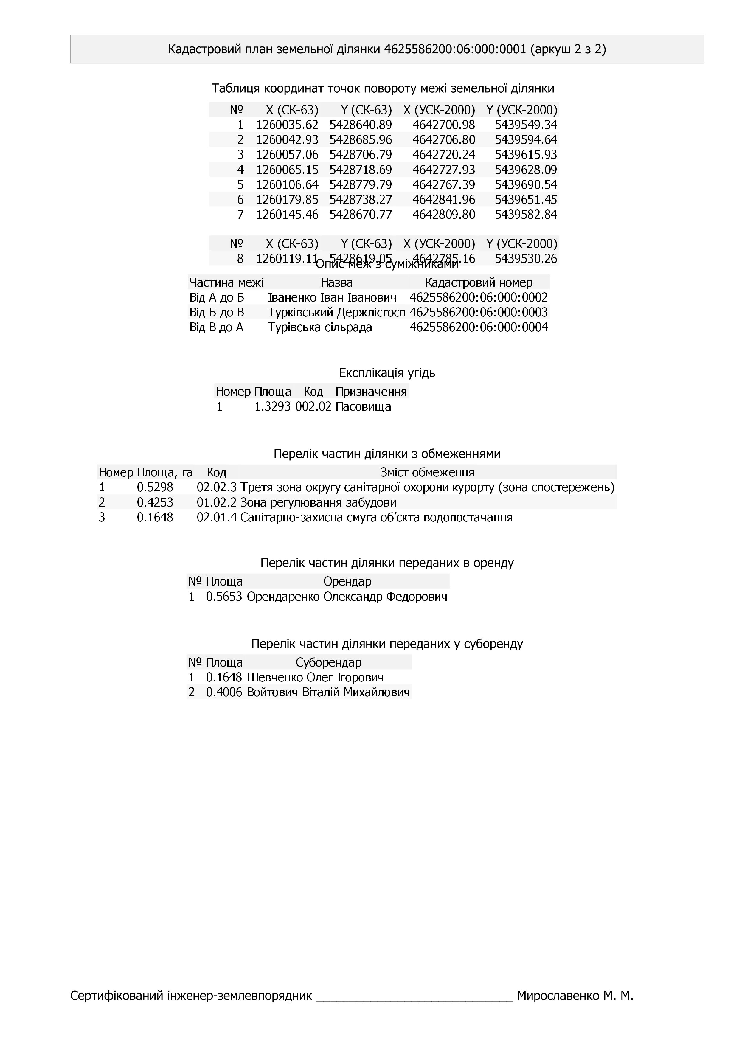 - “суміжників” (сусідні землекористування/ділянки), напрями меж суміжних ділянок;